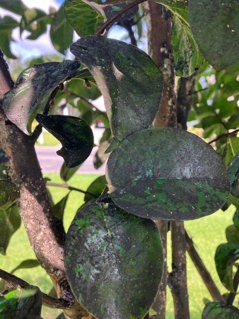 A lawn care customer in North Myrtle Beach called me concerned about their Crape Myrtle trees. They described the issue as "black, sticky stuff all over the leaves and branches." My on-site visit determined his trees were covered with Crape Myrtle Bark Scale. Crape Myrtle Bark Scale appear as small oval white dots. The scale attaches to the stems and the bark of the Crape Myrtles. As the scale feeds they excrete honeydew on the tree. This honeydew is what becomes the black, sooty, mold on the trees.